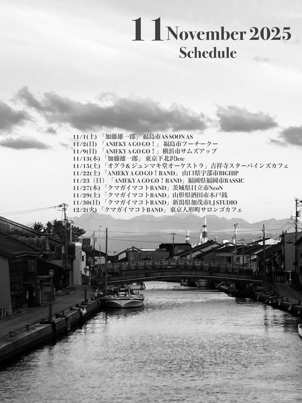 11/30(日) 「クマガイマコトBAND」新潟県加茂市LJ STUDIO